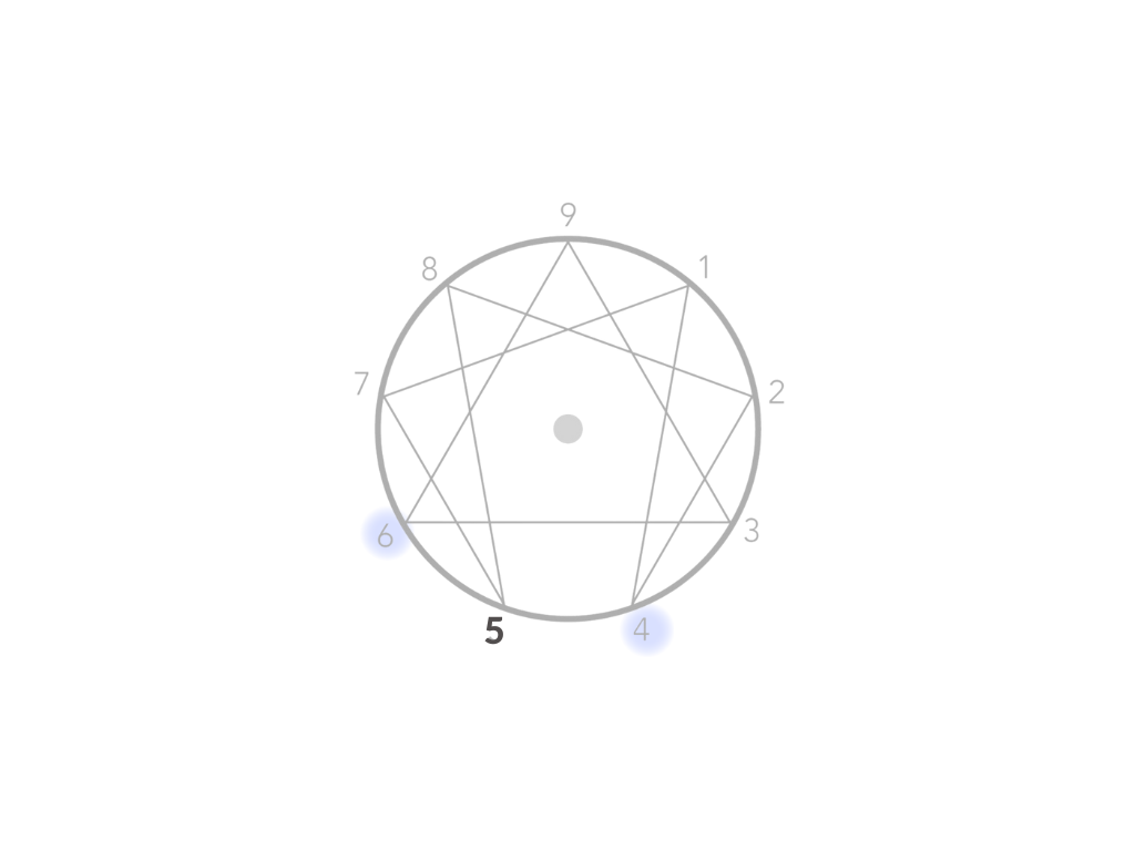 La ala del eneatipo 5 con tendencia al eneatipo 6: puede mostrar rasgos más orientados a la seguridad y el apoyo. Los Cincos con ala Seis pueden ser más cautelosos y enfocados en anticipar y enfrentar los desafíos o peligros potenciales. Tienen una mayor necesidad de seguridad y pueden buscar la aprobación y el apoyo de los demás en su búsqueda de conocimiento y comprensión.